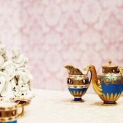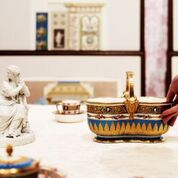 Commissioned as a gift for Prince Grigory Potemkin in 1777 (a close and loyal friend with whom she had had a passionate but short-lived romance), the service was named for the unique carved and painted imitation cameos that adorned each piece. It was made from a “soft-paste” porcelain which was better suited to the decoration required. The Russian Empress requested that the ground colour used for the service be sky blue with a hint of turquoise.