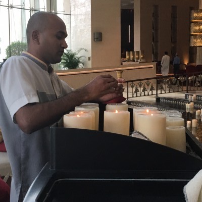 Raffles sits in the health and medical hub, 10 minutes or so from the airport. It’s attached to the similarly Egyptian themed Wafi Mall, which is quieter than the Dubai Mall and has some 150 cool authentically Arabian shops in the Souk Khan Murjan, a recreation of a 14th century Baghdad souk (or market).
