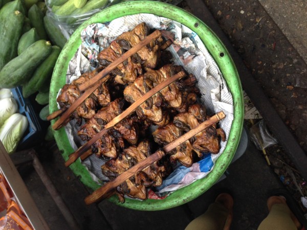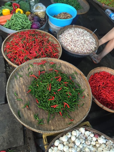 The market, also known as the Talad Rom Hoop market, showcases the abundance of fresh produce the country grows, from all manner of mysterious sea creatures – fresh and dried, to fat frogs, colourful fruits and vegetables, garlic of all hues, leaves of all description, meat and spices.