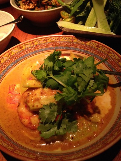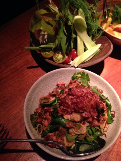 David Thompson’s ever popular Thai fine diner Nahm (handily located in-house!) is pre-booked for dinner. How could you not roadtest the restaurant which was No 1 on Asia’s Best Restaurant list in 2014, and is currently at number 8? With its terracotta brick pillars, dark teak latticework, soft lighting, purple orchids and spaciousness, Namh is a special occasion dance of Thailand’s most ravishing flavours and textures. (Its founder David Thompson is away in Perth at the time setting up his newest venue, Long Chim, in Perth’s newly restored State Buildings but Chris Miller and Prin Polsuk are at the helm. Thompson will be back to pick up the Asia’s 50 Best Lifetime Achievement Award.)