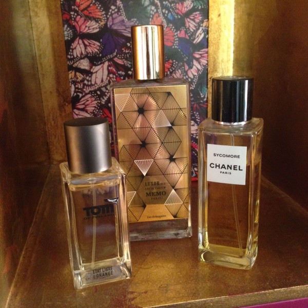 Juice of the day: Tom of Finland by Etat Libre d’Orange; Luxor Oud by Memo; Sycomore by Chanel Les Exclusifs. Photo Susan Skelly