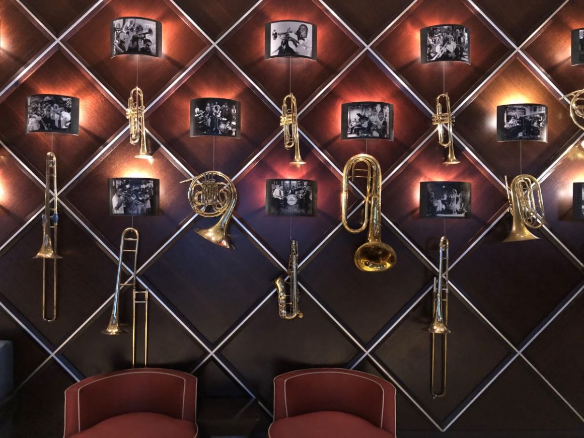 The 1925 Pere Marquette Building was one of New Orleans’ first skyscrapers. Each floor celebrates a legendary jazz musician. I’m on Charlie “Yardbird” Parker’s floor. Piped jazz is the hotel’s backing track 24/7. Expect live music or a DJ in the foyer.