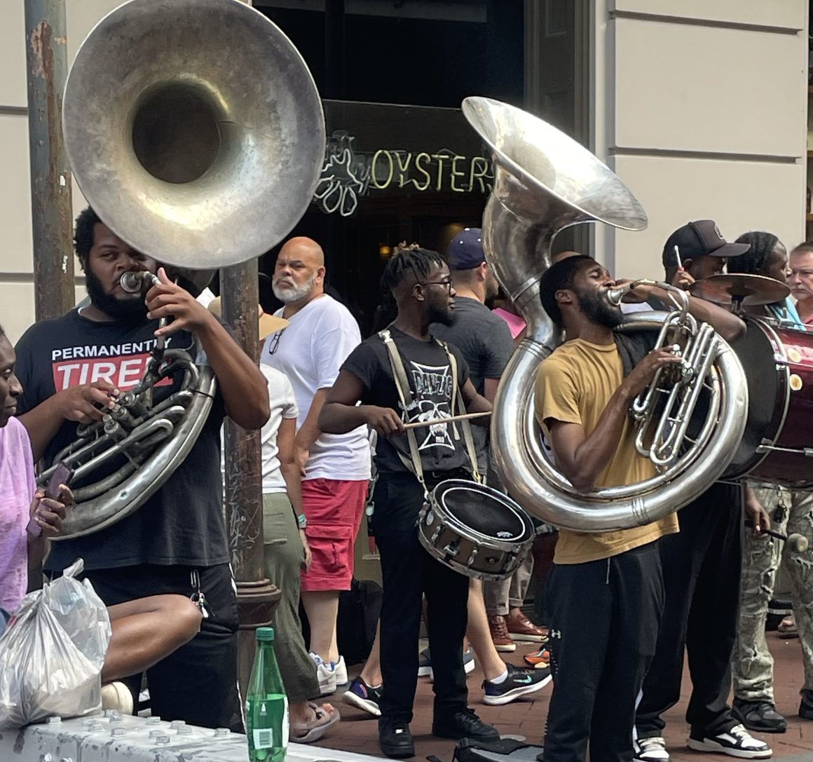 Horn players hit the French Quarter during the Essence Festival